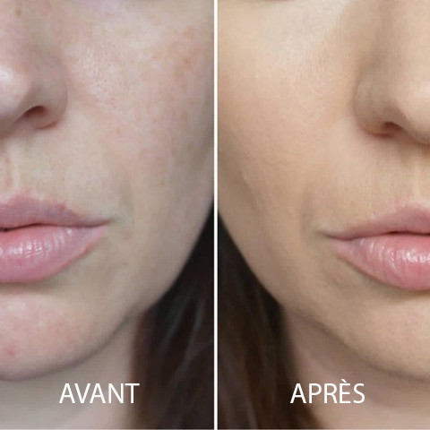 action sur l'aspect froissé des joues les pores dilatés ,le relâchement et les taches brunes